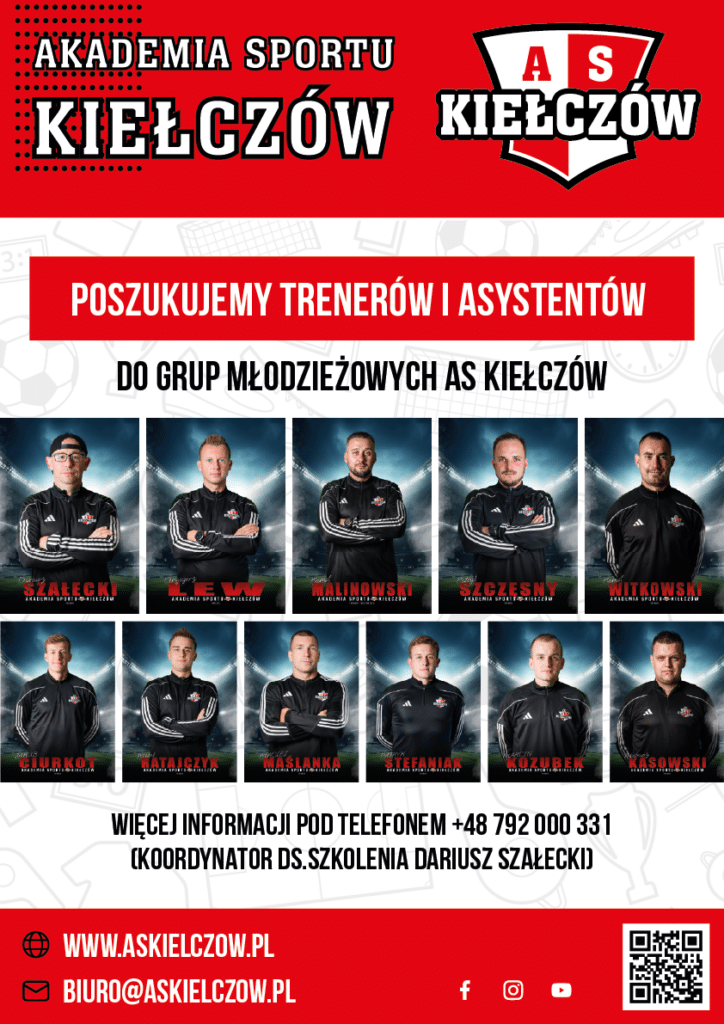 poszukuje trenerów i asystentów piłki nożnej do grup młodzieżowych.